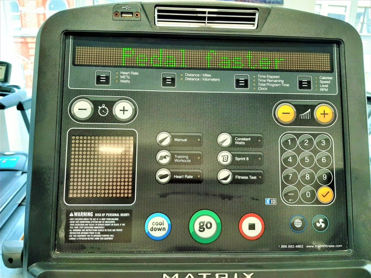 Memories of the hill rolled to the forefront of my mind this morning during my workout at the gym.  I sat on the exercise bike, unable to move the pedals after just 2 minutes of pretty low-intensity cycling.  The screen was flashing, ‘Pedal Faster’, and then a 30 second countdown ensued, in which I was left desperately scrabbling to lift my leaden feet back into the straps before it timed out and I had to reset the programme to start all over again.  But, of course, I couldn’t start again.  All I could do was sit there and whack the machine in frustration while fighting back the tears that were determined to spill over.