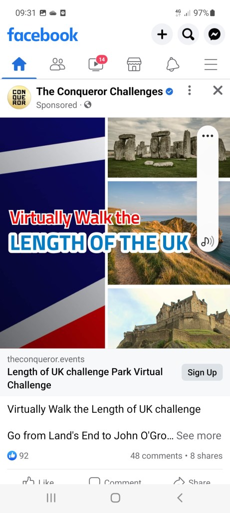 How Facebook knows about my renewed passion for ‘walking’, I don’t know, but the timing couldn’t have been better.