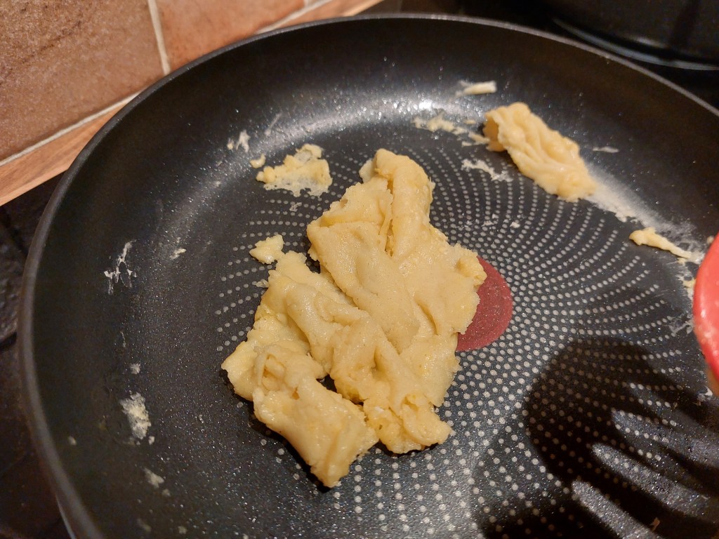 Forgetting to sieve the flour, I just poured everything into the mixing bowl, which again took a while to hunt down! Now, when I’ve seen pancake mix before it has always looked somewhat smooth, but my mixture looked somewhat lumpy.